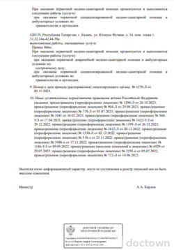 Специализируется на лечении, диагностике и профилактике заболеваний опорно-двигательного аппарата, в том числе плечелопаточного периартроза, остеоартроза, пяточной шпоры, сколиоза, плоскостопия, кривошеи,... читать далее
